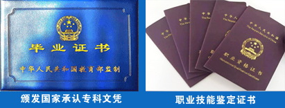 学生毕业后可以获得国家承认、学信网可查的专科文凭,同时在校期间,学校还会统一组织学生考取相关职业技能的鉴定证书,真正实现"双证+就业"让学生在事业和前途两个方向都可以得到长远发展。学校为了满足不同层次的学生报考,特开设:3年制大专(高中起点)、3+2年制大专(初中起点),让每一位学子都能选择适合自己的学制,人生理想得到长远的发展!